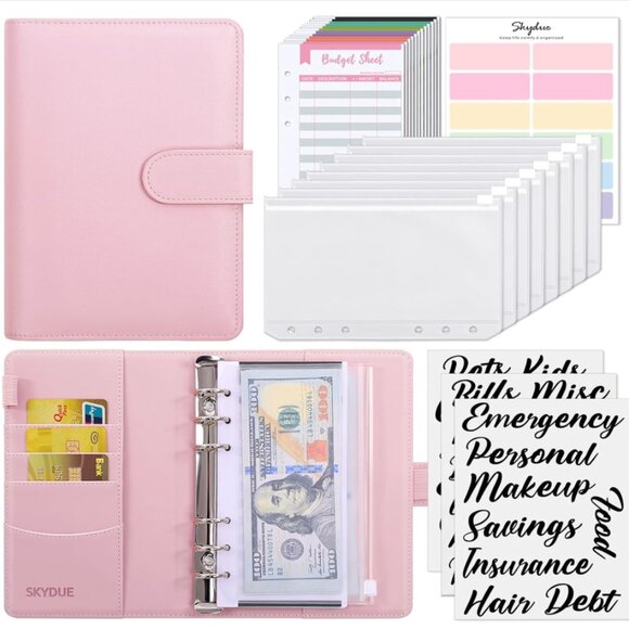 Cash Envelopes System:1pcs PU leather money saving binder,8pcs A6 6-holes binder pockets,12pcs expense budget sheets,3 sheets of category sticker labels,Budget binder with cash envelopes perfect for you to save money.