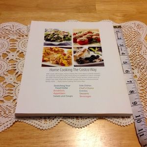 Home Cooking The Cosco Way. 2009 edition cookbook. 8" x 9 3/4" paperback of home-cooked meal recipes featuring Cosco products. In good, clean, used condition but please note nonsticky label glue on cover (last closeup), corner creasing and small scuffed areas. Easy, budget-conscious meals in every category from main courses to desserts.