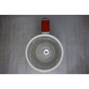 This item measures approximately 6.25" tall, has a top diameter of around 3" and has a bottom diameter of around 3.6".