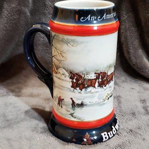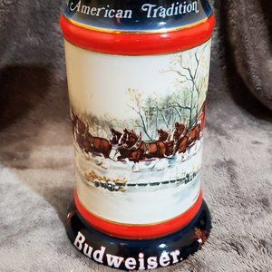 Budweiser 1990 Collector's Series An American Tradition Holiday Beer Stein Mug Displayed not used