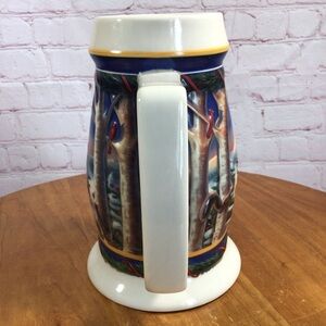 Budweiser 2000 Holiday Stein CS416 “Holiday in the Mountains ceramic stein. This piece measures approximately 6 3/4” tall, 5 1/2” wide including the handle, 4 1/2” in diameter at the base, 3” in diameter at the rim. Great condition. No chips, cracks, repairs or paint wear. Smoke free home.