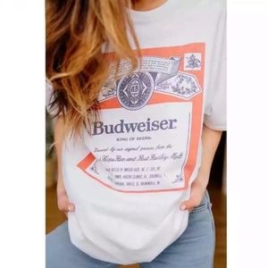 White Budweiser ‘King of Beers’ ad 90s vibes graphic tee.