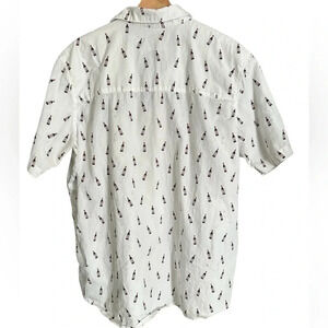 Budweiser white button down shirt with beer bottles. Short sleeves, collar, cotton.