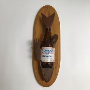 Budweiser Beer Bottle Fish Wall Plaque Wood Handmade Bud Folk Art Bar Decor 80’s
