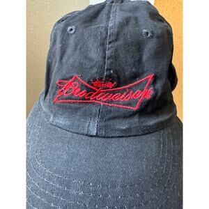 The cap has a relaxed, broken-in look, with some visible signs of wear and light discoloration (as shown in photos), adding to its vintage charm. Perfect for casual outings, collectors, or Budweiser enthusiasts, this cap is ready to top off your look with iconic style.