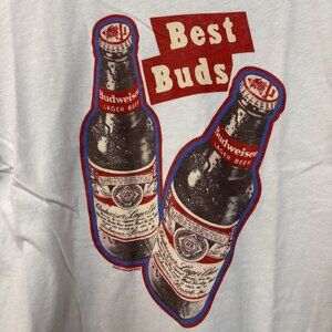 Budweiser Bud's Best Graphic Design T-Shirt Extra Small. Generally measures 18 inches pit to pit and 24 inches long. Amazing graphic design short sleeve women's shirt depicting two beers with a 'best bud; caption, perfect for beer lovers. New never worn and in great condition.