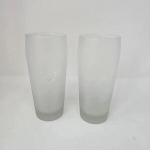 Budweiser Frosted Crown Logo Pint Beer Glasses 6 3/4" Tall Set of 2 Drinking Bar
