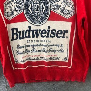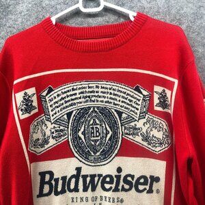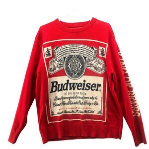 Budweiser Graphic Sweater Mens XL Red Vintage Crewneck Cotton Blend Pullover