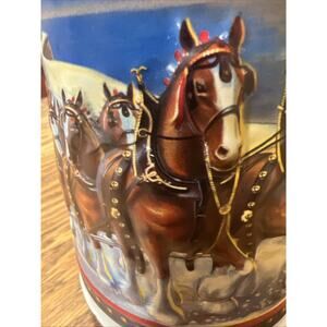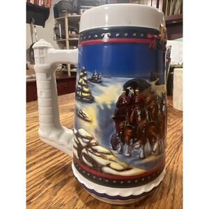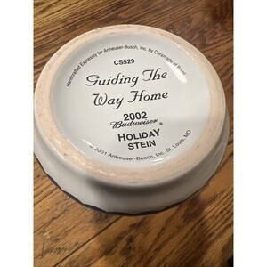 Excellent condition and fantastic decoration! Zoom in to see the intricate detail and bold colors! Wow! A gem! Great gift! Annheuser-Busch Budweiser 2002 limited edition holiday stein entitled, "Guiding the Way Home" featuring clydesdale horses and a lighthouse. Very decorative! 7" tall.