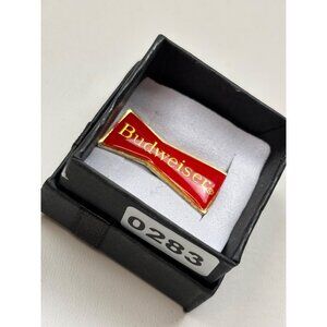 Budweiser Red & Gold Enamel Lapel Pin With Bowtie Logo Design In Black Gift Box