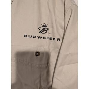 Stylish Budweiser button down shirt. Features embroidered logo. Comfortable and casual design.