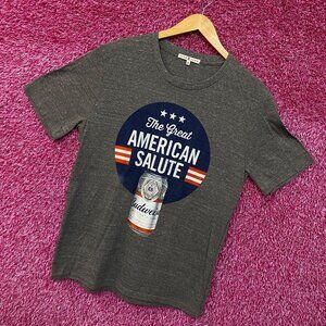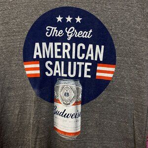 Budweiser The Greatest American Salute Tshirt size medium measures generally measures 21 inches pit to pit 28 inches long never worn first hand overstock great condition with an amazing graphic