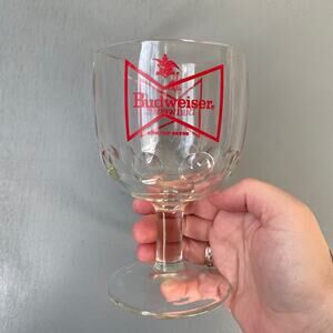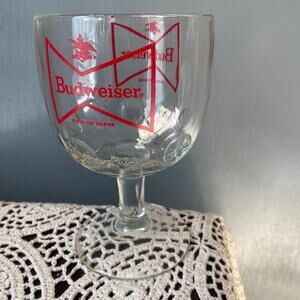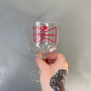 Budweiser Vintage Thumbprint Glass Goblet Red Bowtie Retro Beer Glass
