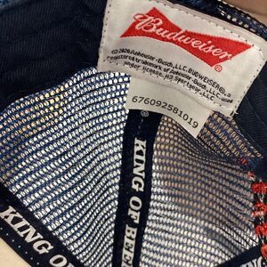 Budweiser White Anheuser Busch King Of Beers Snapback Trucker Hat Adjustable