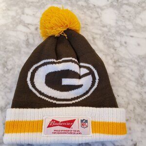 Budweiser beer Green Bay Packers Beanie Toque Winter Knit Hat NFL Logo Pom Pom
