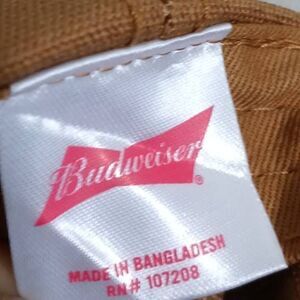 Budweiser Adjustable Dad Hat Cap is a new, unisex, one-size-fits-all snapback cap with tags. The cap features the Budweiser brand logo. It is designed for adults and has an adjustable strap. The cap is perfect for those who love the dad hat style and want to show off their love for Budweiser.