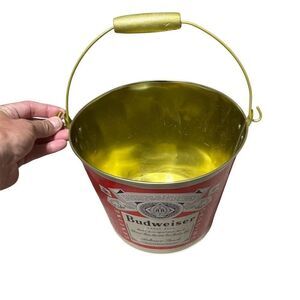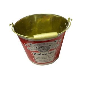 Budweiser Red Metal Ice Bucket with Handle Breweriana Cooler