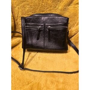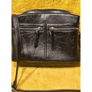 Bueno Black Faux Leather Purse Crossbody Moto Purse Adjustable Strap Zipper Boho