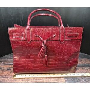 Bueno Burgundy Croc Embossed Faux Leather Large Weekender Tote Purse Attache VTG