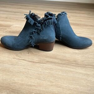 Bueno Cathy Fringed Ankle Booties Blue Suede Leather US 5.5 EU 36 Block Heel