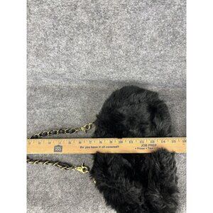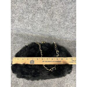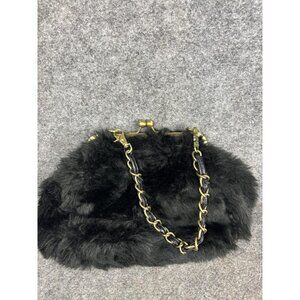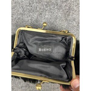 Bueno Clutch Purse Womens Black Faux Fur Kiss Lock Frame Chain Evening Mini Bag