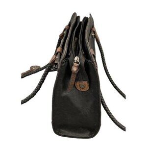 Bueno Collection Black & Brown Faux Leather Women's Handbag With Braided Handles
