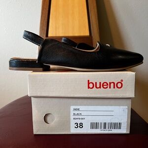 Bueno Indie Slingback Pointed Toe Flat Black Leather 38