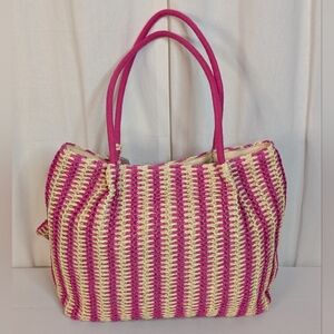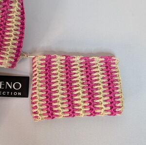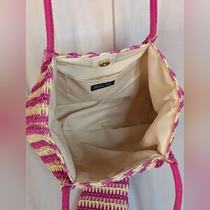 Bueno Pink and Cream Straw Tote With Coin Pouch NWT