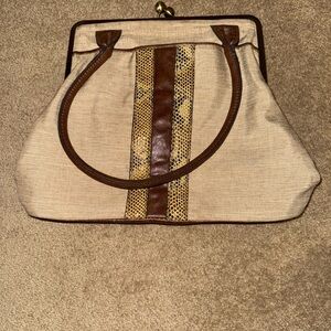 Bueno Women's Handbag Purse Kiss Snap Closure Boho Retro Faux Snakeskin Accent