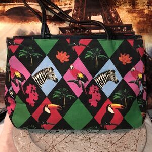 Bueno Toteables Wearable Art Palm Tree Toucan Zebra Canvas Beaded Tote