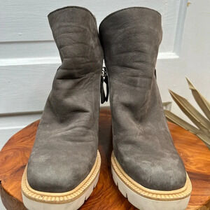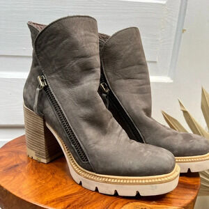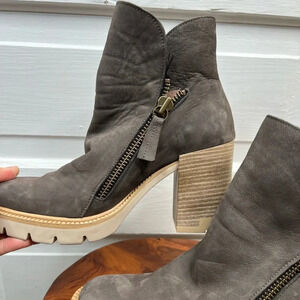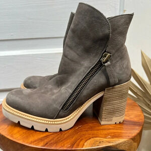 Bueno Women's Elliott Ankle Boots Size 9 Stone Nubuck Gray Block Heel Zip Side