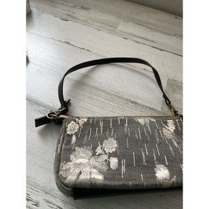 Bueno mini zippered clutch bag with detachable strap. Leather type strap bottom. Has iridescent look flowers. Good pre-owned condition.