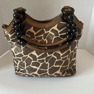 Bueno of California giraffe print wooden beaded handles purse bag satchel
