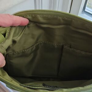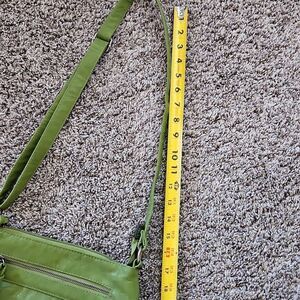 Bueno stylish green crossbody bag perfect for everyday use. Features a convenient front zippered pocket,a snap front pocket, adjustable strap,inside zippered pocket and 2 open pockets. This is in great previously owned condition.