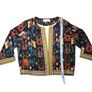 Buenos Ninos Women's Sz L Colorful Open Front Short Retro Chic Jacket