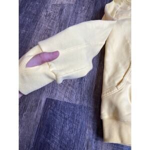 BuffBunny Collection Women's Size Large Butter Yellow Heavy Pullover Sweater Top. Your right arm has a spot with multiple small white spots, near the elbow. Pictured.