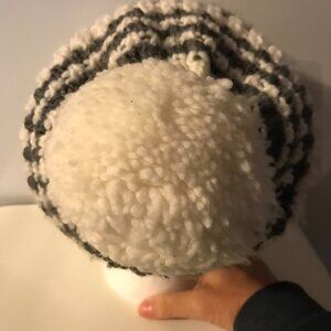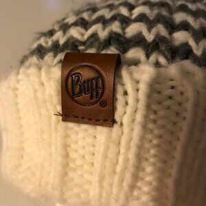 Buff beanie stocking cap/hat. Gray & white (pictures look more black but it is gray). With Pom on top.