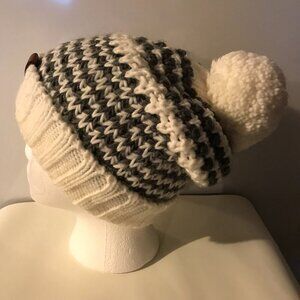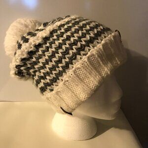 Buff beanie stocking cap/hat. Gray & white. With Pom on top. Primaloft