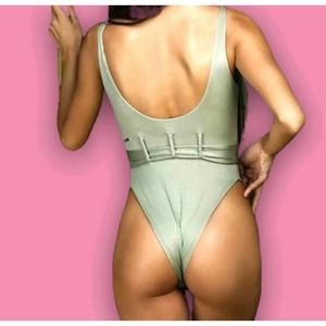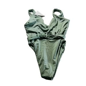 BuffBunny Collection Belted One Piece Swimsuit Size S Small NWT Green