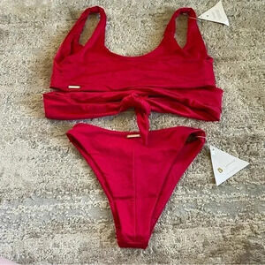 BuffBunny NWT High Tide 2 Piece Matching 2 Piece Set Dark Red Wrap Top: Small