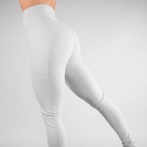 BuffBunny Luna Leggings in Stone Grey but almost have a blue hue to them