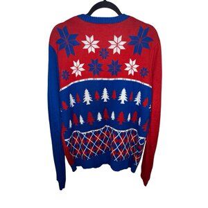 Buffalo Bills Busy Block Snowfall Hand Made Sweater- Missing the Size & Care Tag, See Measurement For Size. i did find it when i googled it.