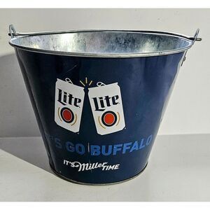 Buffalo Bills Football NFL Metal Ice Beer Bucket W Handle Miller Time Let's Go