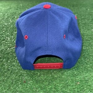 Stylish blue and red cap featuring a distinctive logo. Perfect for casual wear.