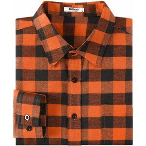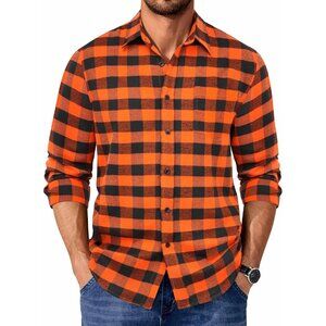 Buffalo Black Orange Men Flannel Long Sleeve Plaid Button Up Shirt Jacket