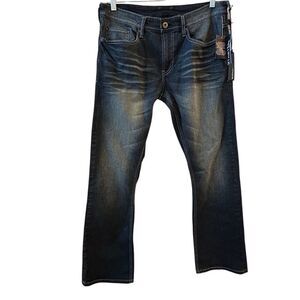 Keywords: Buffalo Blu, men's jeans, bootcut, slim fit, denim, blue jeans, medium wash, stretch jeans, five-pocket, fall fashion, machine washable, new with tags, Kade X, 33 x 32.