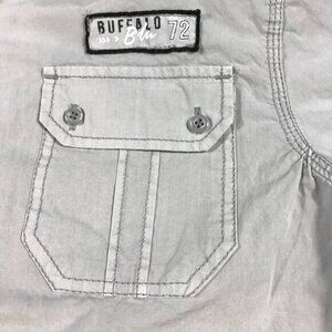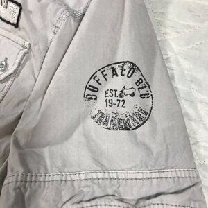 Buffalo Blu born to look unique 2 pocket short sleeve gray button front shirt L