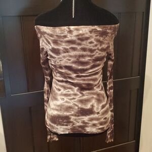 Buffalo Brown Tie-Dye Off-Shoulder Fitted Long Sleeve Top. Size Small.