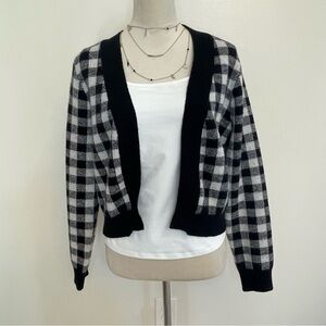 Add a pop of classic pattern to your fall wardrobe with this cozy black and white buffalo check cardigan by Grace Karin. Features a cropped fit, soft brushed knit texture, and an open front, perfect for layering over tanks and tees. Great for school, coffee runs, or crisp autumn days. Pre-owned, like new, no flaws.
