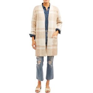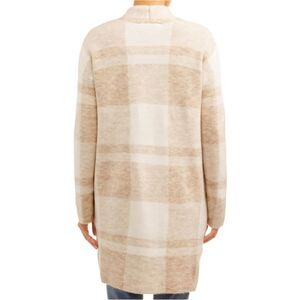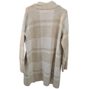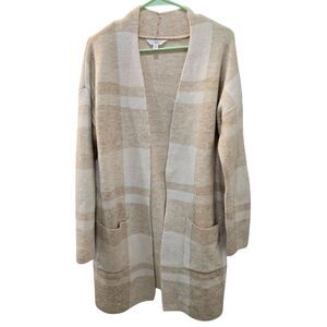 Buffalo Check Long Cardi Womens Medium 8-10 Winter White Oatmeal Plaid Cardigan